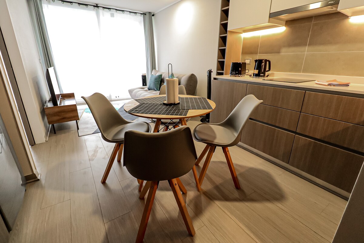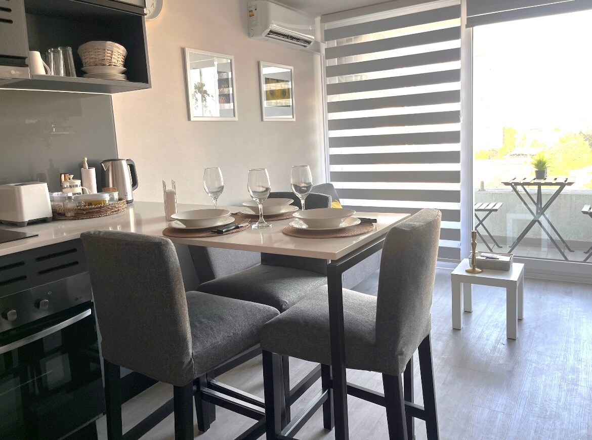 ¡Disfruta de una estancia inolvidable en nuestro hermoso departamento! Totalmente equipado, con Wi-Fi (perfecto para teletrabajo), cocina full equipada, habitación acogedora y estacionamiento privado dentro de las instalaciones. 📍 Ubicación: A 8 minutos caminando del metro Ñuble (línea 5 y línea 6). 🛏️ Capacidad: Hasta 2 personas