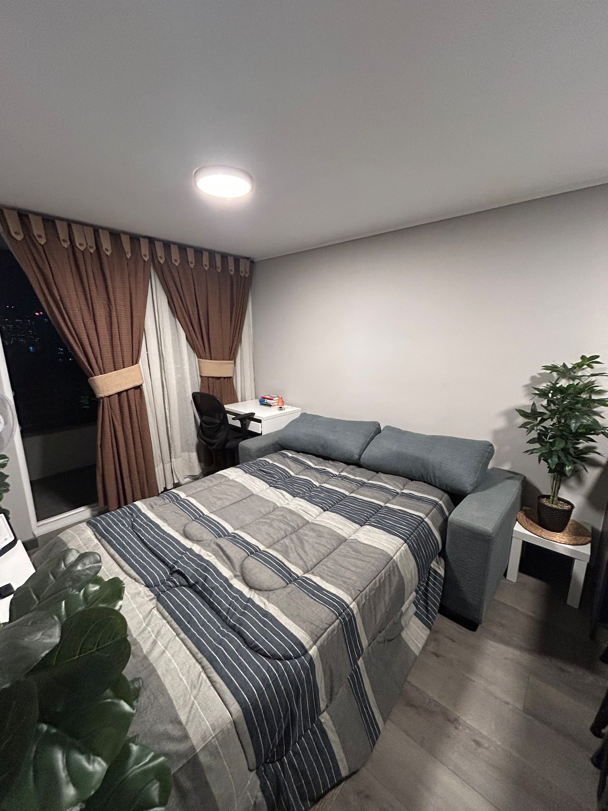 Disfruta de un tipo estudio perfecto para descansar. Muy acogedor y con todas las comodidades necesarias para que no te falte nada durante tu estadía. Al estar de viaje una de las cosas más importantes es tener una buena ubicación, acá tendrás la oportunidad de tener justo enfrente una de la líneas de metro con mejor conectividad, estación Ñuble donde combinan línea 5 y 6. Además de variedad de comercios y restaurantes a pocos pasos del edificio. Queremos que en tu viaje sea lo más cómodo.