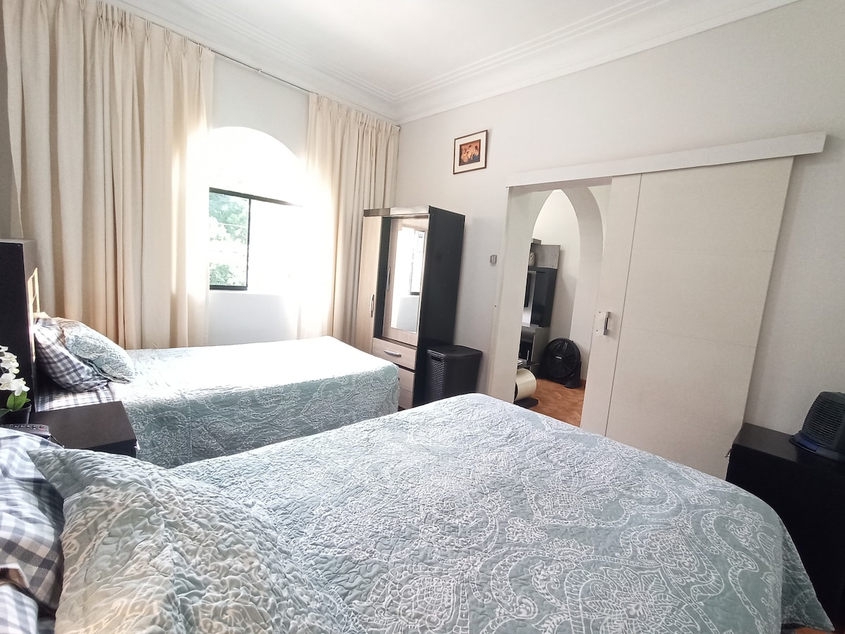 Amplio departamento, iluminación natural con terraza y vista a la ciudad, Relájate en el sillon colgante observando el atardecer, cuenta con un cuarto acogedor con closet, cocina equipada, sala, comedor y baño completo con agua caliente. Ninguna área compartida todo es de uso exclusivo del huésped, con wi-fi, Netflix. Ubicado a 4 cuadras de la Rambla Brasil, mercado Flores, avenidas principales, muy centrico, ideal para largas estadias. Recepción 24/7 - acceso al dpto es con código.