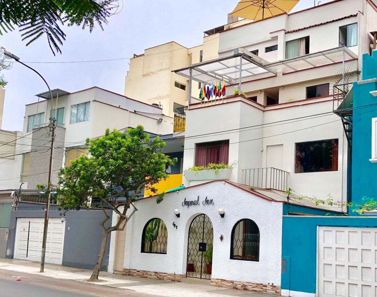 Encantador hotel en el distrito de Miraflores, en una zona residencial y tranquila, contamos con alojamiento incluido el desayuno buffet y zonas exclusivas para el bienestar de nuestros huéspedes.