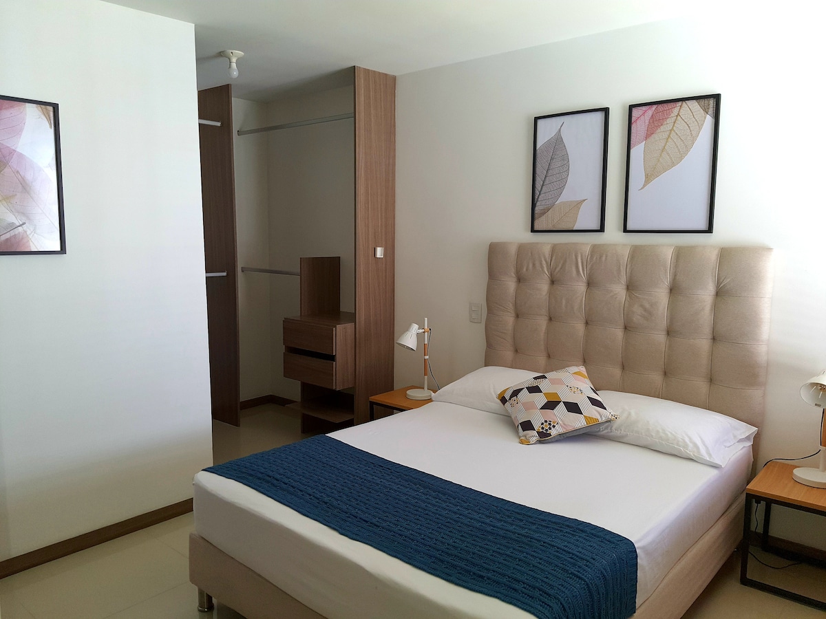 Enjoy a comfortable stay in this modern and lovely studio apartment located in the exclusive Cuarto de Legua neighborhood in southern Cali. A private and functional space with a pleasant mountain view and a strategic location close to shopping centers, restaurants, clinics, and universities. Ideal for resting or working in total comfort. Book now and experience Cali from a prime location.