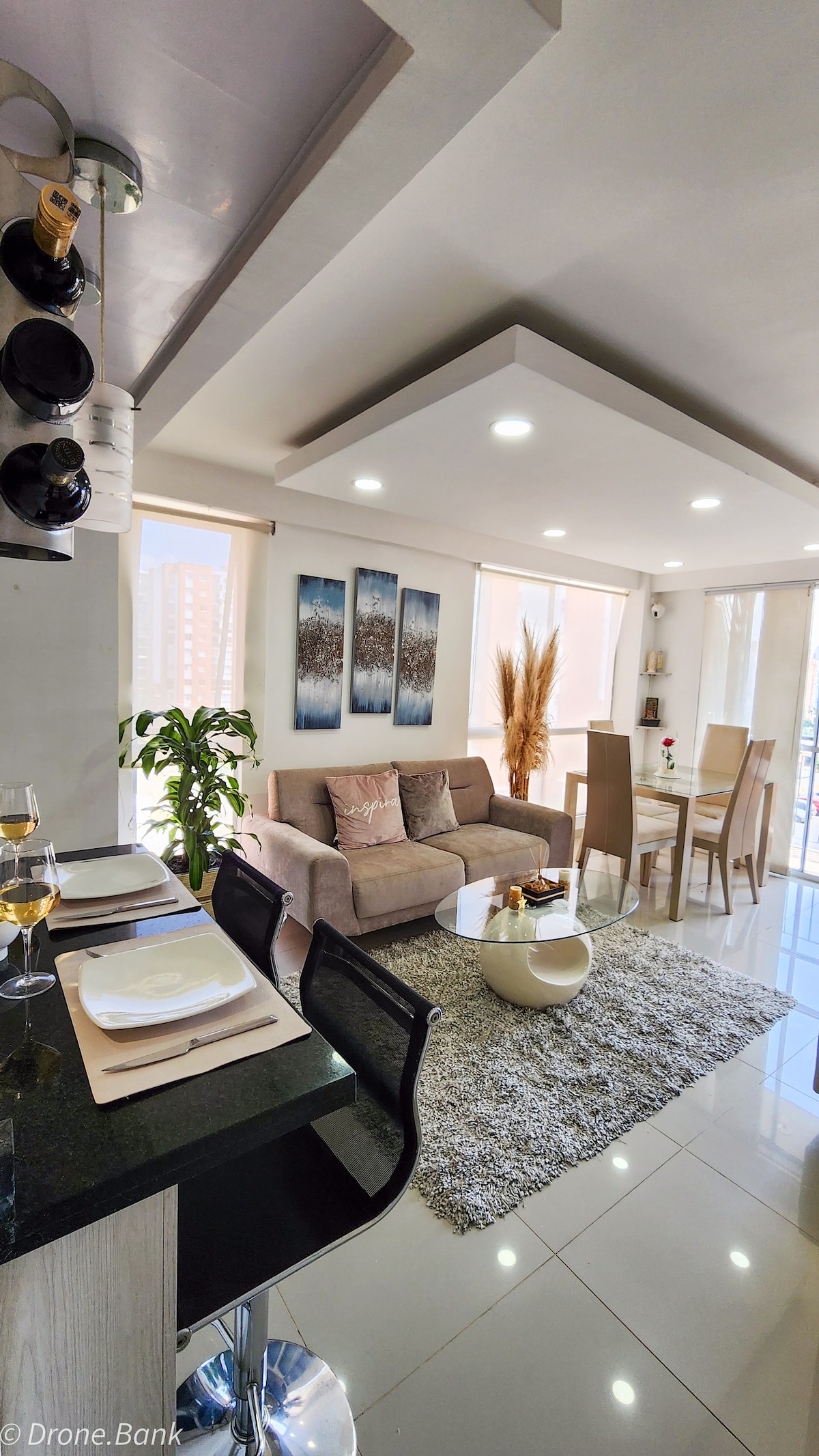 Spectacular apartment in one of the best neighborhoods in Cali with a panoramic view of Cristo Rey, very bright - Free luggage storage service Very comfortable room with a queen bed, a spacious balcony with an living room, a work space, a full kitchen, and a dining bar. The building has a coworking area, jacuzzis, a BBQ terrace, and an outdoor bar. Close to shopping centers, clinics, a dog park, the Granada neighborhood, El Peñón, and the Pascual Guerrero stadium, El perro park and much more!