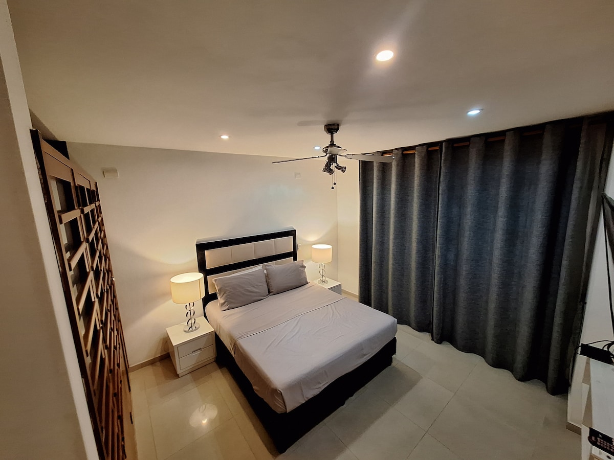 🌴 EXSTR APARTMENT • Villa del Peñon 301 This two bedroom, two bathroom unit with a balcony, is the perfect match for families, groups of friends, or digital nomads. All tabs have hot water, the bedroom has A/C, smart TV, and a queen bed. All the amenities are in place and have been designed with your comfort in mind. The El Peñon neighborhood is a very walkable area with plenty of restaurants and entertainment within minutes. Colonial San Antonio is only 3 blocks away.