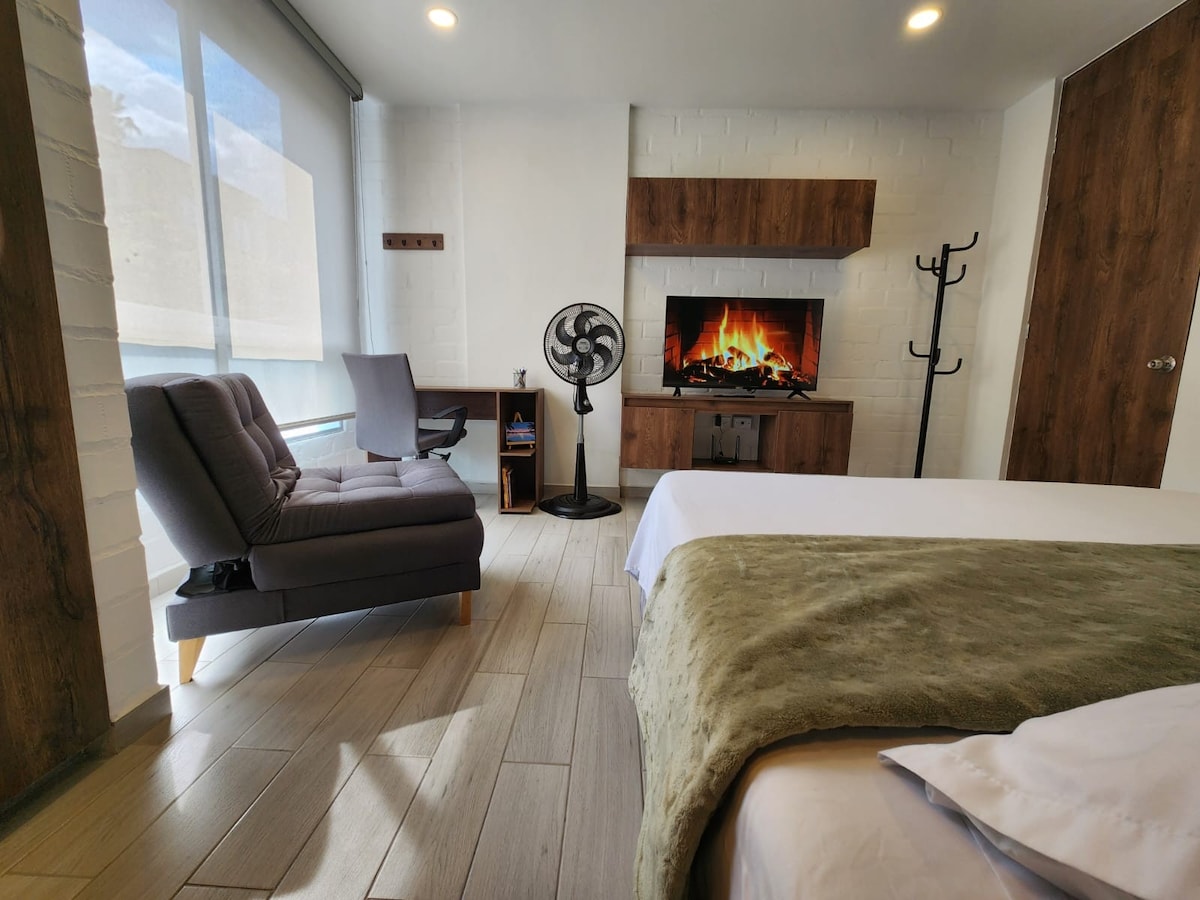 Enjoy a comfortable stay in this modern and lovely studio apartment located in the exclusive Cuarto de Legua neighborhood in southern Cali. A private and functional space with a pleasant mountain view and a strategic location close to shopping centers, restaurants, clinics, and universities. Ideal for resting or working in total comfort. Book now and experience Cali from a prime location.