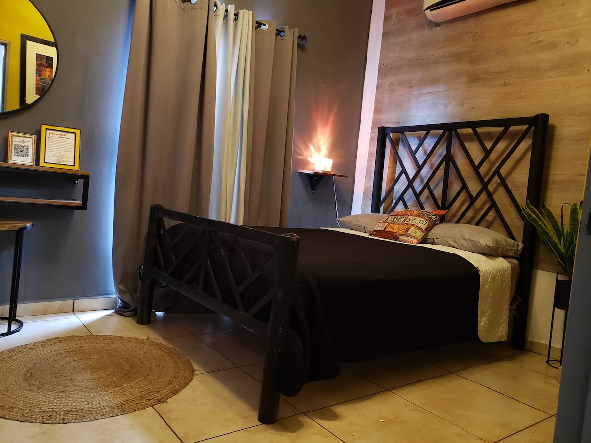 Rest or work in this modern and quiet spot, at street level. Excellent location in residential area in the heart of Las Quintas neighborhood. 5 minutes walking distance to restaurants and other services like laundry, pharmacy, convenience store. 10 minutes driving distance to city downtown.