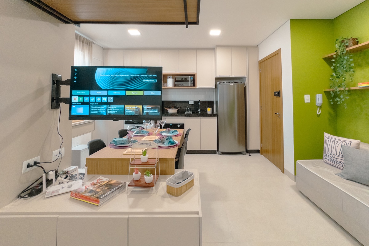Localização Premium e Comodidades Exclusivas em Maringá! Localização: Centro de Maringá - PR, próximo ao Estádio Regional Willie Davids e ao lado do Mercadão. Cozinha: Completa com cooktop, forno a gás, geladeira, micro-ondas, utensílios. Banheiro: Jogo de toalha de banho para cada hóspede. Quarto: Cama de casal, jogo de cama completo, manta/cobertor de microfibra, ferro de passar roupa, TV, ar-condicionado. Sala: TV, ar-condicionado, mesa para trabalho home office, Wi-fi.