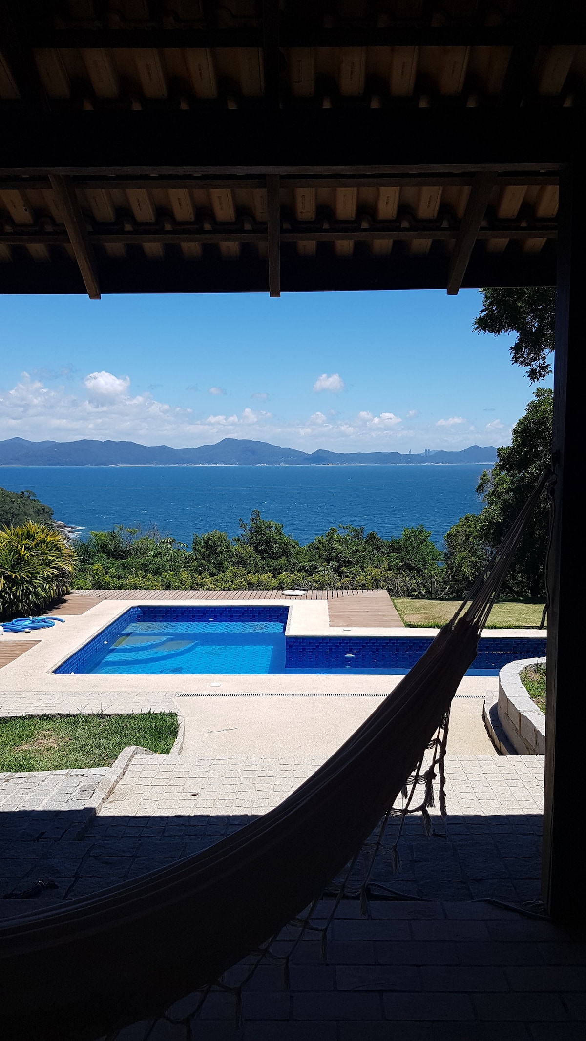 A casa possui 3 quartos, sendo uma suíte e um banheiro adicional. Uma sala grande, cozinha e uma varanda com uma vista espetacular, de onde pode-se tomar o café da manhã com uma vista espetacular. Há uma área de churrasqueira, coberta, com vista para o mar, para a baía de Porto Belo e a Ilha de Porto Belo. Vocês estarão a poucos passos do mar. Se precisar, há um espaço para trabalho e temos wi-fi com fibra óptica, de alta velocidade. É possível estacionar 3 veículos, com facilidade