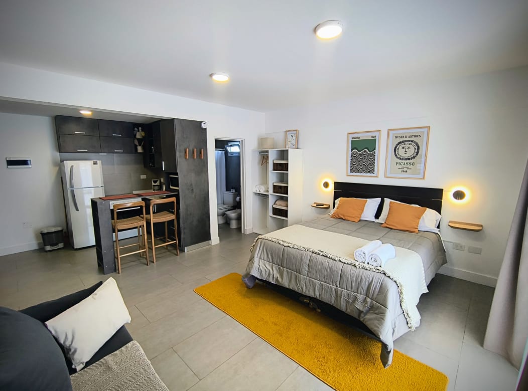 Tu escape ideal te espera a minutos del Aeropuerto Internacional de Ezeiza. Este encantador apartamento ofrece un ambiente sereno, perfecto para relajarte o trabajar con wifi de alta velocidad. Ubicado en Canning, disfrutarás de un entorno verde y fresco, junto con una variedad de servicios a tu alcance, supermercado 24hs, restaurantes entre otros. Con seguridad privada 24hs nuestro alojamiento te brinda la tranquilidad y comodidad que buscas. Ven y haz de este espacio tu hogar lejos de casa!