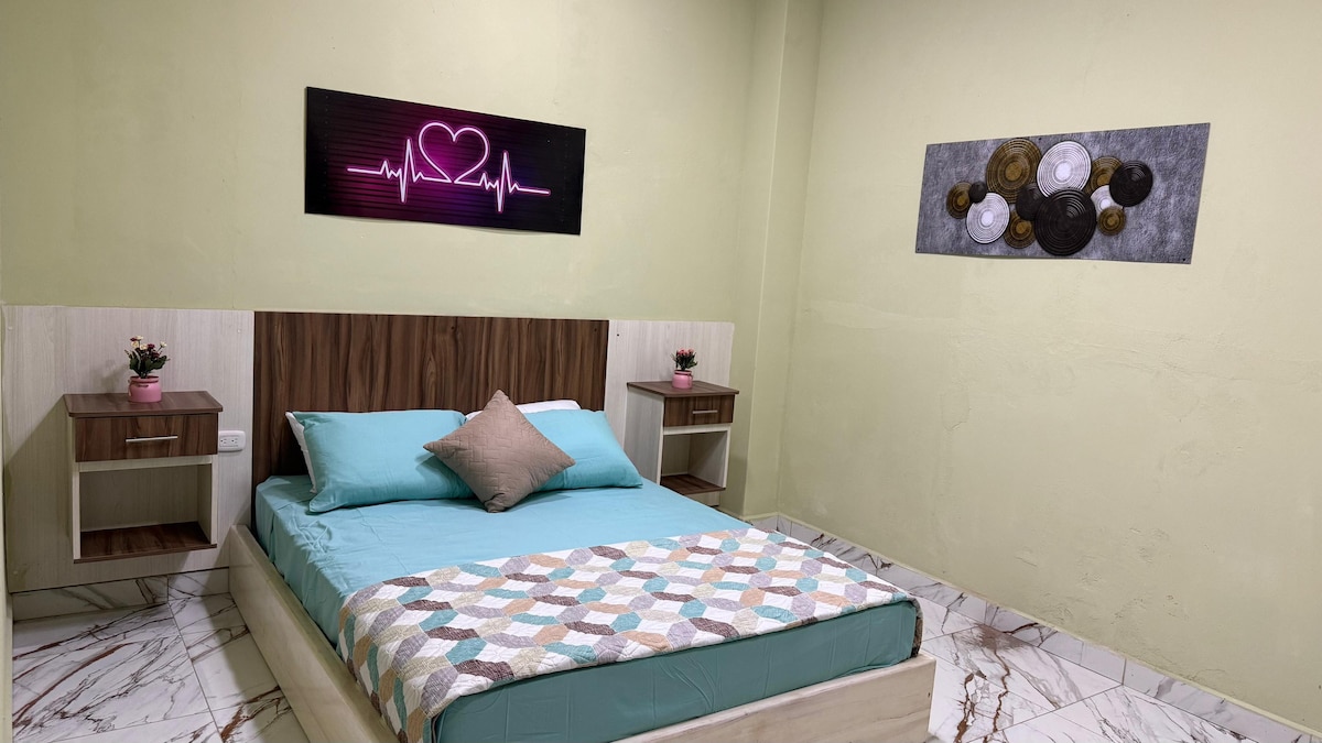 Aparamento de Dos habitaciones , un baño compartido , aire acondicionado , abanico , parqueo gratuito y seguro , derecho a piscina gratuito. Junto a un restaurante ideal para niños con juegos de diversión, lugar seguro para la tranquilidad de los adultos