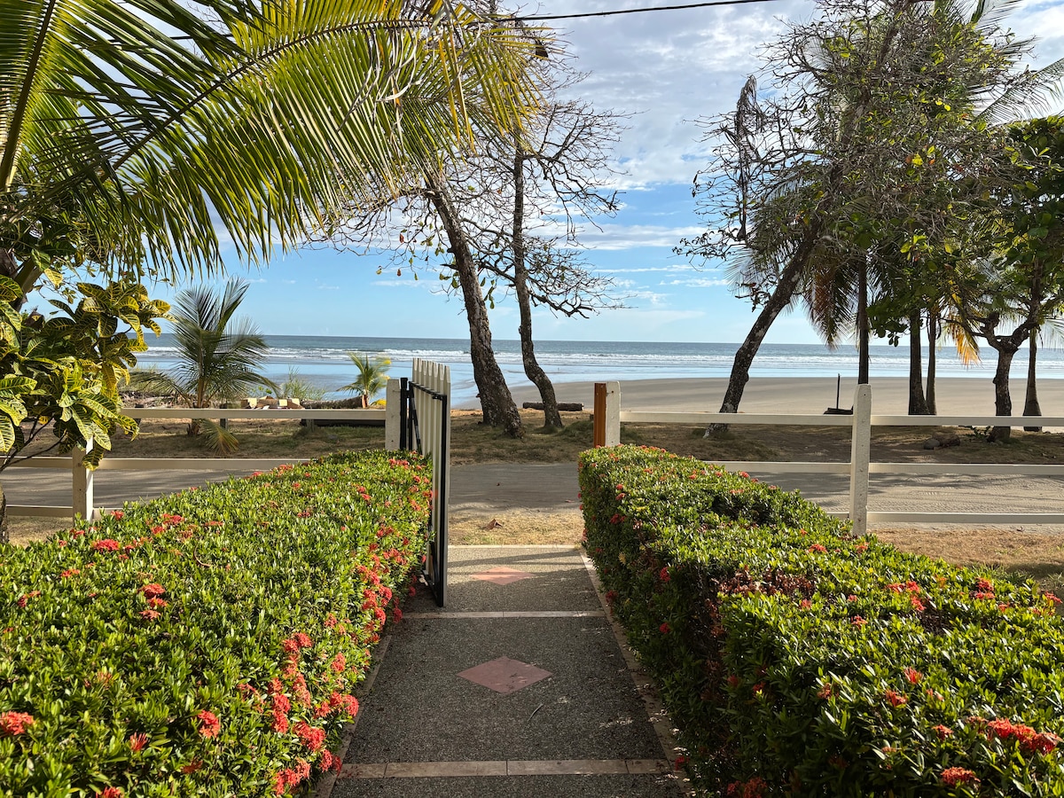 Frente al mar. A solo 2 horas del Aeropuerto Juan Santamaría. Disfrute de una espectacular vista y el sonido del mar, mientras esta en la piscina, desayunado o descansando. Excelente para surf. Con marea baja se forman piscinas de arrecifes seguras para los niños, ideales para snorkeling. Las iguanas, guacamayas de colores y cangrejos son parte de entorno. Cerca de sitios de canopy, diving y pesca. Hasta 6 personas incluye 2 habitaciones, de 7 a 8 personas 3 habitaciones