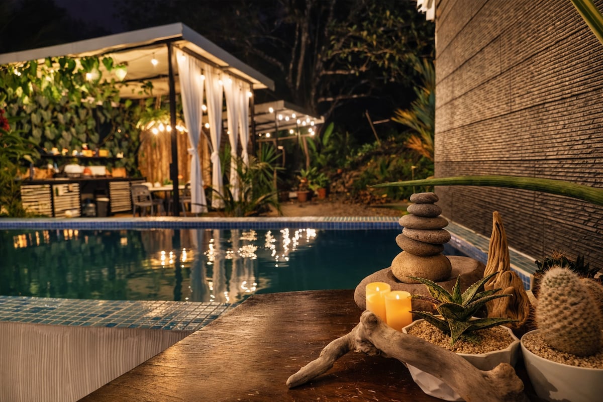 Jumanji Villa is a handcrafted space where playful design and nature create a sense of rhythm and ease. You’ll be staying in one of two independent homes, fully equipped for a comfortable stay, connected by a spacious shared patio with a pool, outdoor kitchen, and a large bath in the spa area. The ocean is just a 5-minute drive away, with national parks close by. Sauna and cold plunge sessions are available at an additional cost and are a perfect way to end the day after exploring. Welcome!