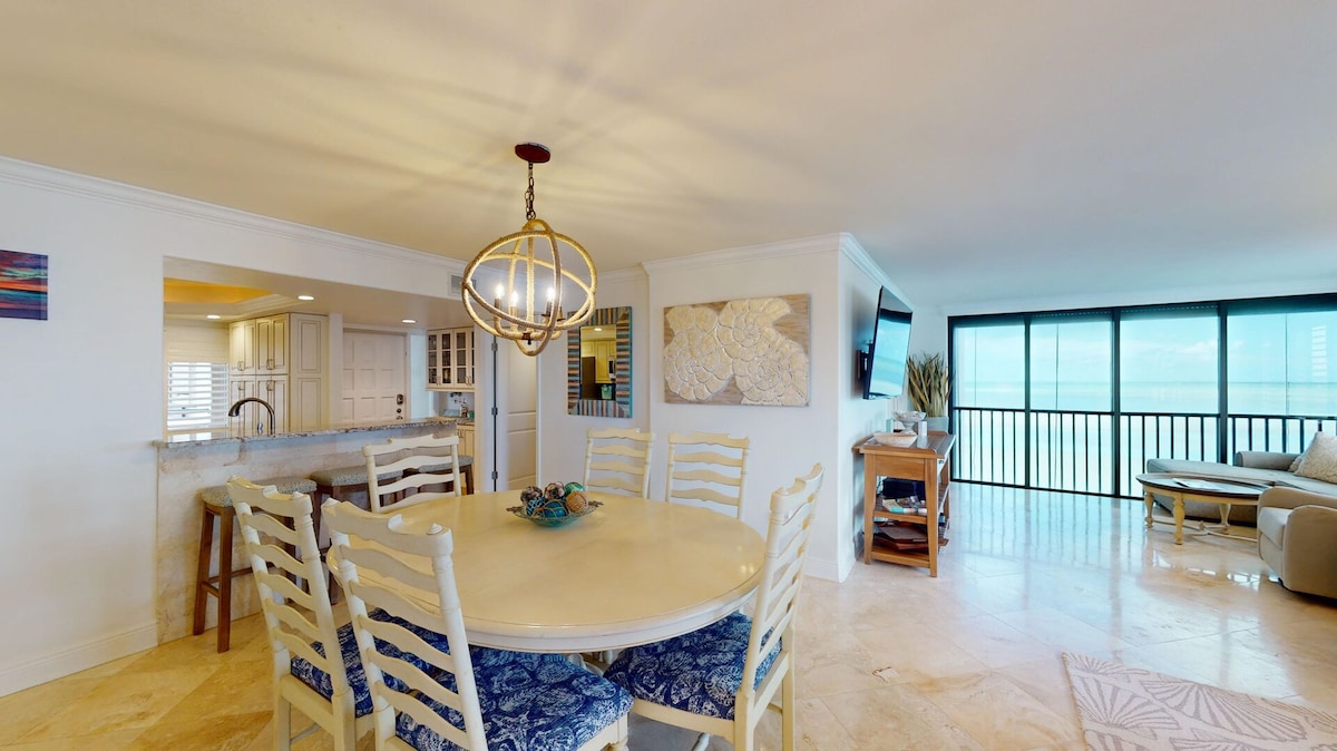 Feeds the senses & nourishes the soul! Away from the crowds and noise is this spectacular, waterfront (on the beach) 5 Star corner condo allowing you private unobstructed views of the Gulf, San Carlos Pass, Fort Myers Beach, City Lights, Back Bays, wildlife - on Lover’s Key State Park Beach (#4 in US & 3 miles of pristine white sand shelling beach and 700 acres of nature). Don't miss this lifetime memorable experience. The Hot Tub is closed for shore repairs - bridge construction is minor.