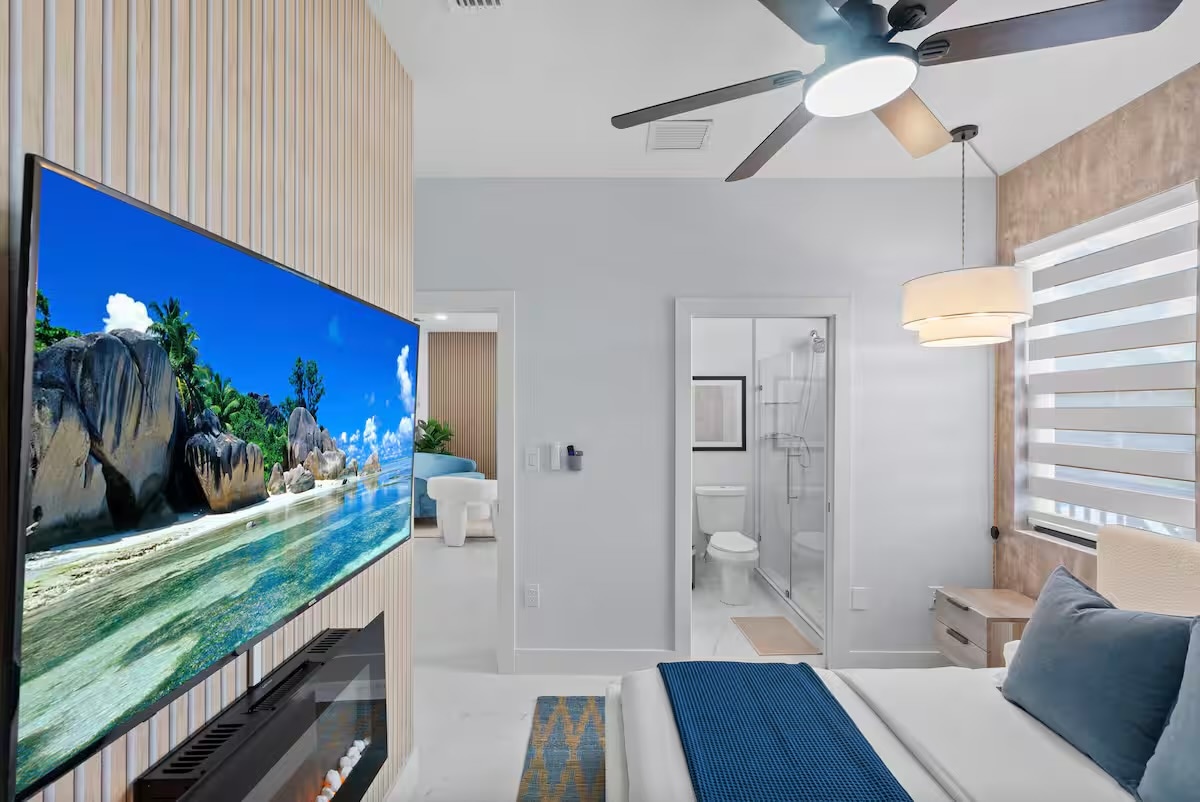 Less than a mile from Time’s Square, the beach center, and the remains of the pier. Beach access is a 5 minute walk. Close to public transportation and located on a quiet street with a private backyard on a canal. If you’re lucky, catch a glimpse of a dolphin or manatee. Private entrance. Newly remodeled with full kitchen and shared laundry room. If this sounds like what you’ve been looking for, instant book right now or text me with any questions you might have.