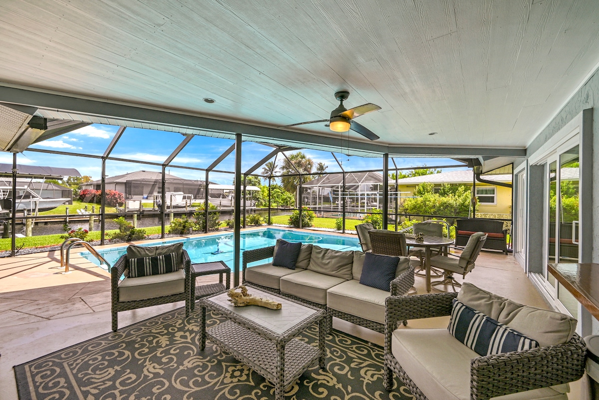 This spectacular 2358 sq. ft. Cape Coral waterfront home will exceed your expectations with its luxurious updates and abundant amenities. Located in a quiet neighborhood, but within minutes to shopping, grocery, restaurants, and beaches! Enjoy a large lanai with a heated pool and spa, outside TV and built-in grill. Includes kayaks, fishing poles, beach items, stroller, private driveway parking, Wi-Fi and printer. Gulf access with boat dock.