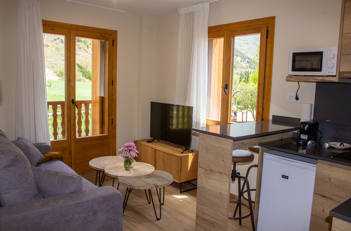 The Areny Apartments are designed to offer the greatest comfort to its guests. With incredible views of the river and located in the center of Esterri d'Àneu, they offer your stay a relaxing atmosphere, apart from being close to the most important sites in the town and its surroundings. Perfect for a couple or a family.