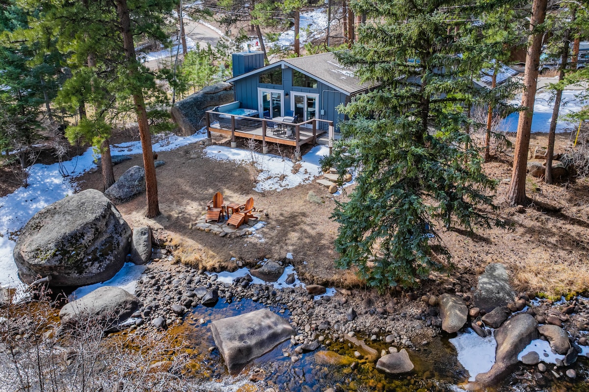 Fall asleep to the soothing sounds of Stillwater, a peaceful cabin with a hot tub on the bank of Fall River (Permit 3068). BBQ on the deck, read by the water's edge, enjoy the gas fireplace & reconnect with nature's tranquility. A place to rejuvenate! - 2 mins to downtown Estes Park - 5 mins to RMNP - Private riverside hot tub - Cozy gas fireplace - Comfortable king bed - Riverside seating area - Smart TVs - Full kitchen Serene cabin for 4, freshly remodeled for maximum relaxation