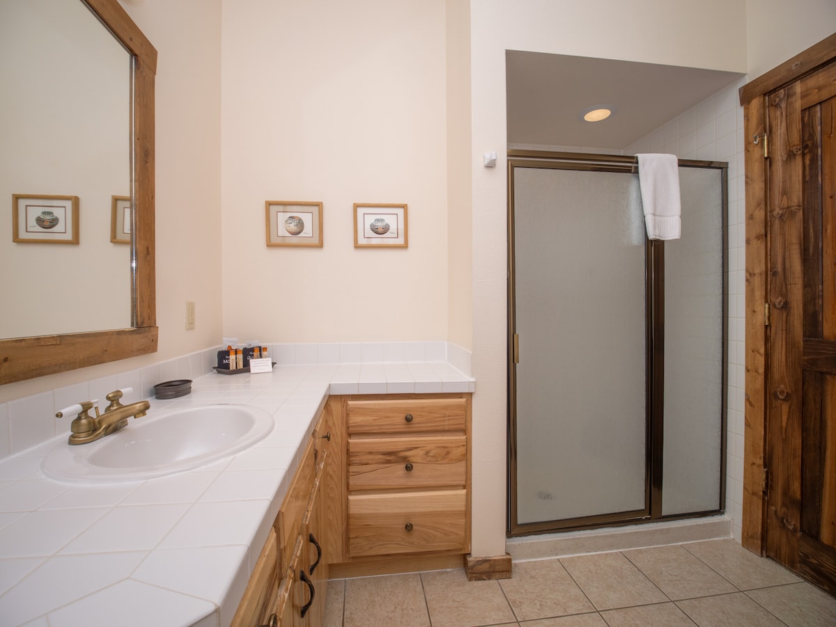 Ski lodge decor designed for your most comfortable stay! Settle into your guest room and bath with comfy pillows and throws, wifi and cable, a soaking tub with yummy bath products, and a location that puts you in the middle of the mountain fun! If you have the EPIC, or IKON ski/snowboard pass, many resorts are nearby and you'll have great dining, shopping, and other activities to choose from, and my pup to welcome you home!