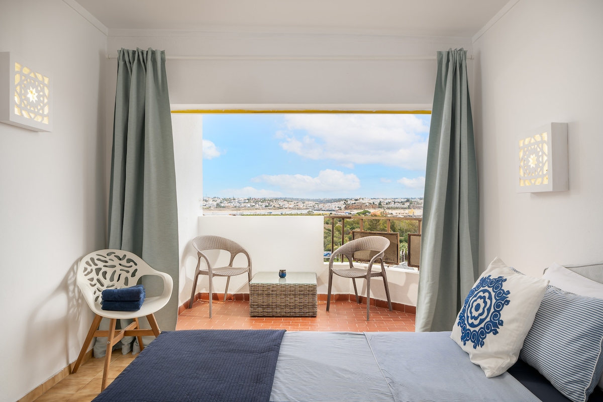 Welcome to our stunning one-bedroom apartment in Lagos, Portugal! With access to a shared roof terrace boasting breathtaking sea, mountain, and beach views, along with a private balcony overlooking Monchique Mountain and city skyline, you can relax above the rooftops. Conveniently located just a 1 minute walk from the beautiful historical centre of Lagos and a mere 15 minutes walk from the beaches. Feel good knowing our place is eco-friendly :-) Don't miss out on this perfect getaway in Lagos!
