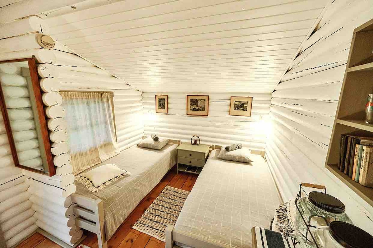 Sauna included in the price! A dreamy cabin set in a peaceful country garden only a few hundred metres from secluded sandy beaches. Snuggle up by the fireplace and enjoy a cup of hot chocolate in this enchanting oasis of tranquility on the quiet Estonian peninsula, just forty minutes from exciting Tallinn. If you wish, you can care for and cuddle the fluffy chickens (no obligation!) who live on the premises and over summer listen to the crickets singing amongst the lavender beds.