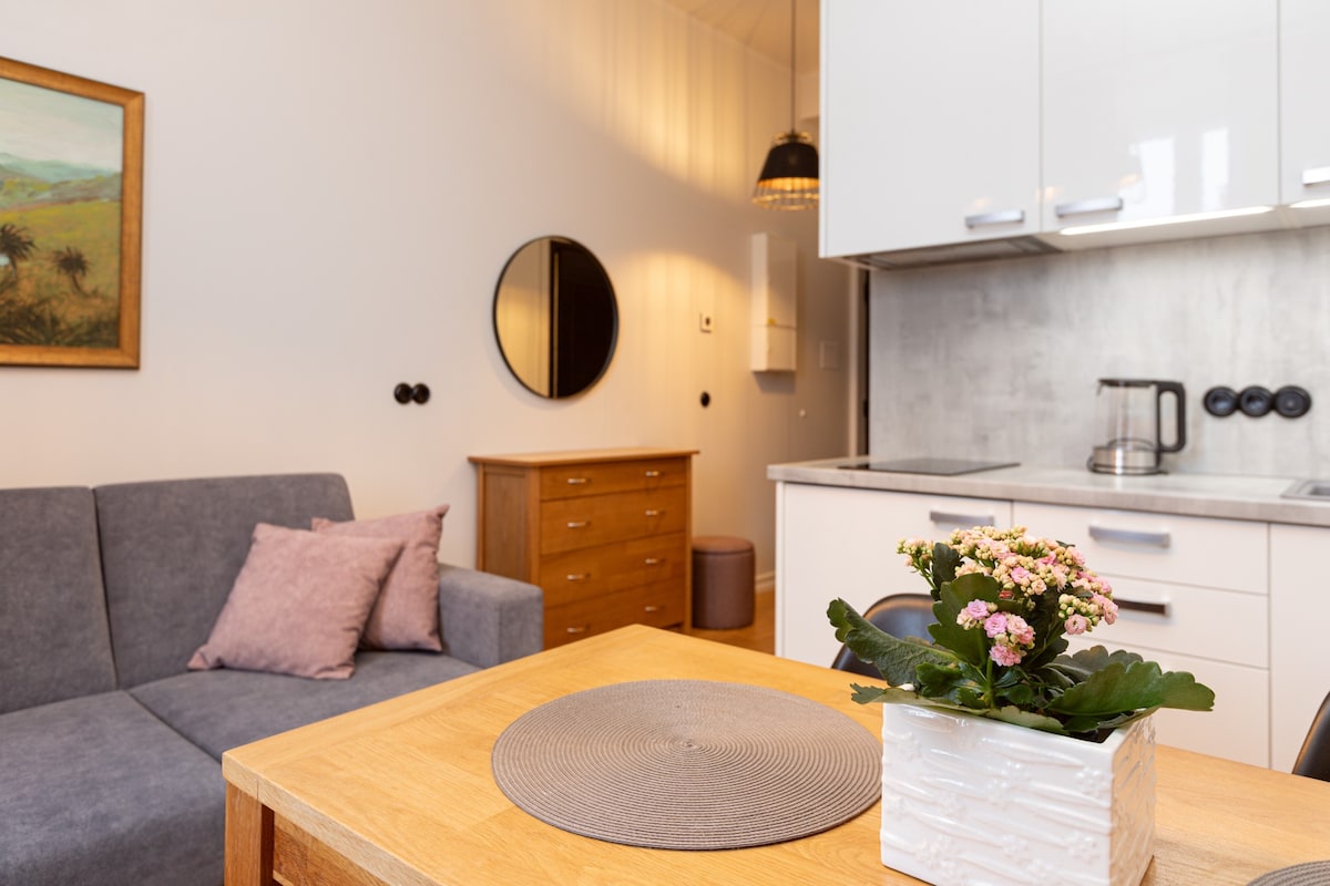 Experience Parisian charm in the heart of Tartu’s Old Town. This cozy, stylish loft on the ground floor offers a view of St. John’s Church, high ceilings, blackout curtains, a luxury bed, full kitchen, and Smart TV with Chromecast and premium cable. Enjoy free access to the gym, rooftop terrace, laundry, and cinema room (bookable). A cozy café downstairs adds to the charm. Perfect for both business and leisure stays.