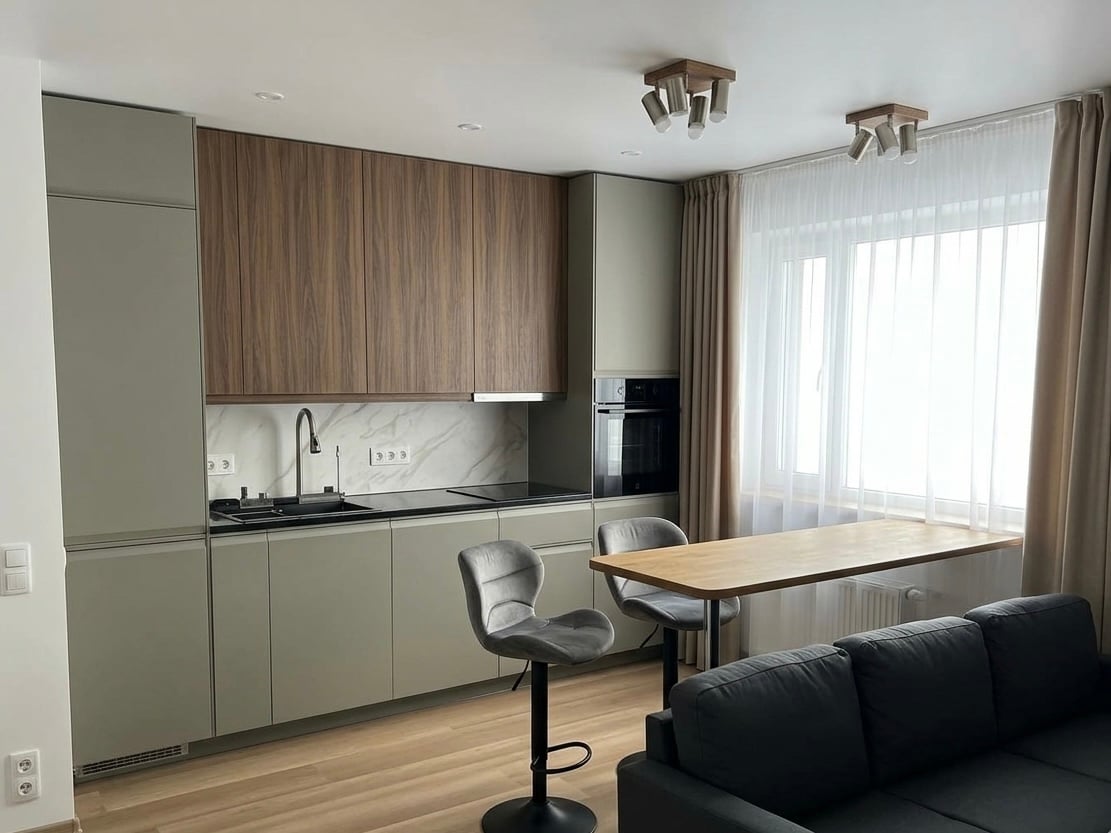 This lovely and spacious new-building apartment is in a downtown neighbourhood with a view towards the quiet historic Uue Maailma district. It features a living room with an open kitchen, a balcony, and a bedroom with a double bed. The sofas in the living room can be converted into a double or two single beds using comfortable mattresses stored in the hall.