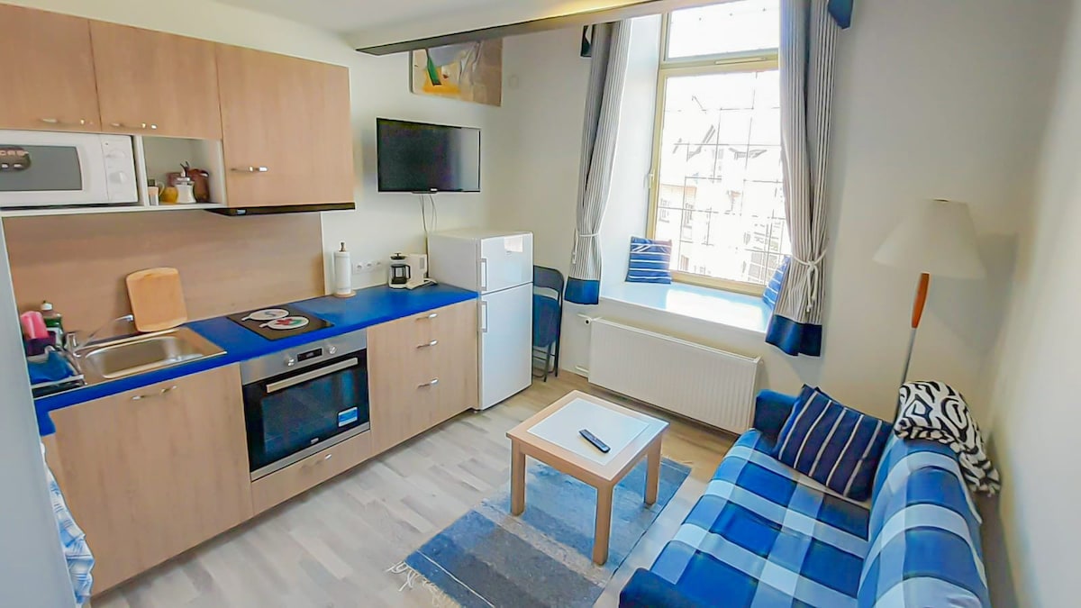 市中心单间公寓,配备按摩浴缸。免费停车位。