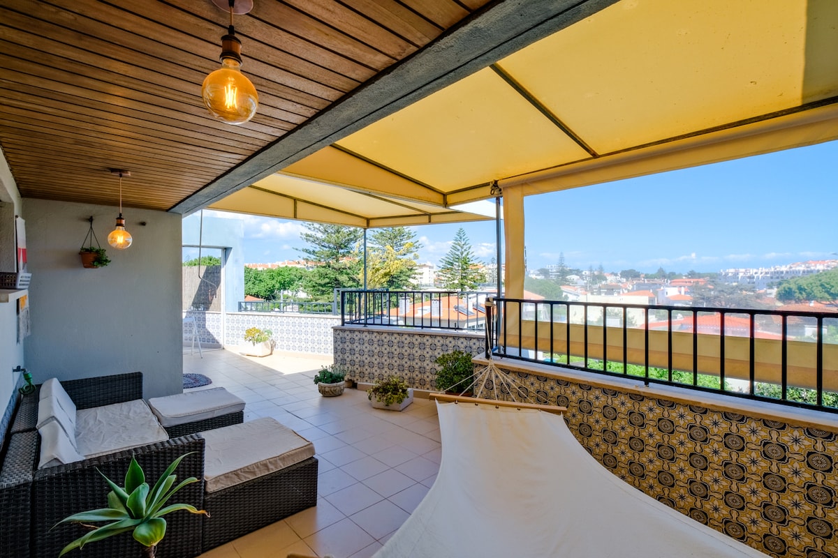 This apartment is unique in its surroundings, due to the terrace equipped with hammock & barbecue and a beautiful sunrise view (East). Take a walk to Parede beach (9 min), or to Riviera Shopping Center, on the way to Carcavelos beach (12 min walk) where you can take surf lessons. Keep in mind the house is located on the 3rd floor, without elevator. It's equipped with Wi-Fi, TV in the living room and bedroom, and a fully equipped kitchen.