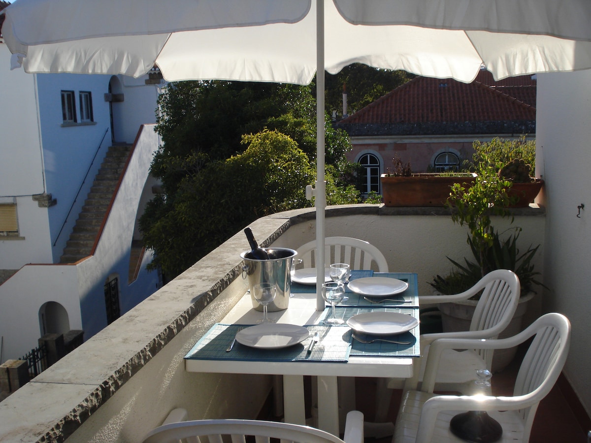 Ideally located, in the heart of the old Cascais village. Very peaceful and cosy, 5 minutes walk to the beach and Marina. Small terrace with view to the sea. **************************************** O apartamento é um pequeno duplex no último andar de um prédio de 2 andares. Tem sala, um quarto de dormir, casa de banho e cozinha no andar principal e dois pequenos quartos, uma salinha e uma casa de banho no sótão. O apartamento está totalmente equipado, com máquinas de lavar loiça e roupa, micro ondas, torradeira, maquina de café, maquina de sumos, fogão, forno, frigorífico , pratos, copos, talheres, etc. Terá ao seu dispor lençóis e toalhas de banho. A fantástica vista do terraço e a luz que entra em toda a casa são os melhores aspectos deste apartamento. Apesar de se encontrar perto do centro de Cascais (com restaurantes, bares e supermercado na zona) este apartamento é extremamente sossegado. A marina, onde tem a oferta de mergulho ou pesca desportiva esta a 5 minutos a pé. Campos de golfe, ténis e padel a 5 minutos de carro. Estação de comboio para Lisboa e bus para Sintra a 5 minutos a pé.