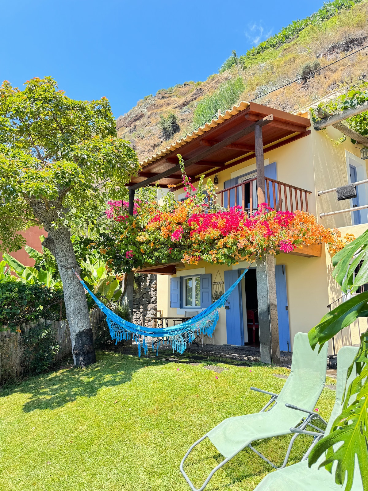 Beach front home featured in Conde Nast Traveller w private swimming pool & tropical garden in the Old Town of Funchal. Just 200m, 5min walk to the city center, beach & restaurants. Free street parking & fast internet. 2 bedroom villa w 2 bathrooms, living room & kitchen w unlimited sea views. Fully renovated w stylish interiors & lots of outside relaxing, sunbathing & dining space with BBQ. Tropical oasis in the city, feels like the countryside. Perfect base to explore Madeira´s hikes & beaches