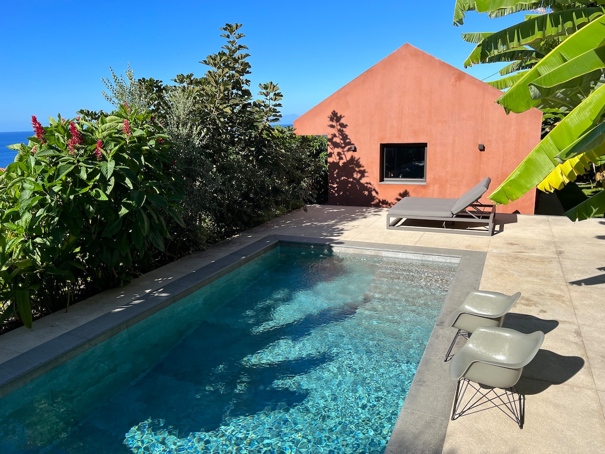 It is a new and luxurious property with an outdoor private pool and surrounding garden with breath taking views of the Atlantic, within walking distance of the spectacular waterfall Cascata dos Anjos. The energy around you allows you to let your mind walk away from the worries of daily life and welcomes you to simply enjoy the moment, sorrounded by Nature and with the ocean at your feet.