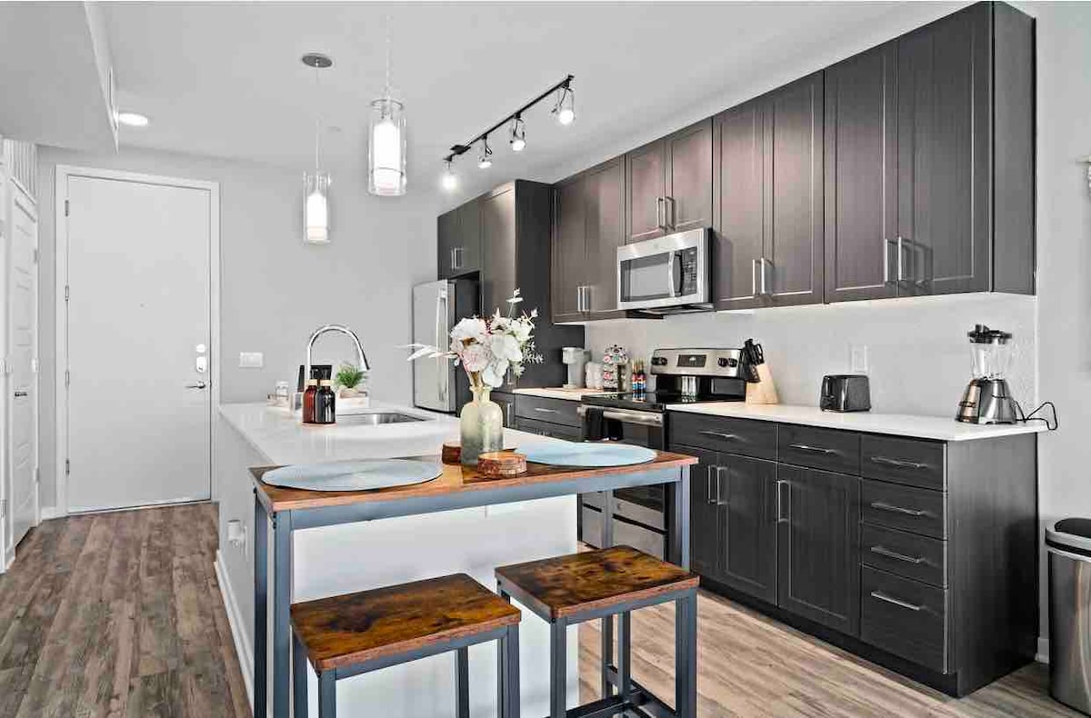 Welcome to our 1 bed 1 bath apartment, in the heart of downtown Phoenix! Our apartment is perfect for solo travelers or couples looking to explore the vibrant city. Enjoy our stylish living room, fully equipped kitchen and comfortable bedroom. You'll be in a vibrant and busy neighborhood, next to all the best restaurants, bars, and attractions that Phoenix has to offer. Next to Roosevelt Row ✔ Fully Equipped Kitchen ✔ Comfortable Bedroom w/ Queen Bed ✔ Office Desk ✔ Wi-Fi ✔ Free Garage Parking
