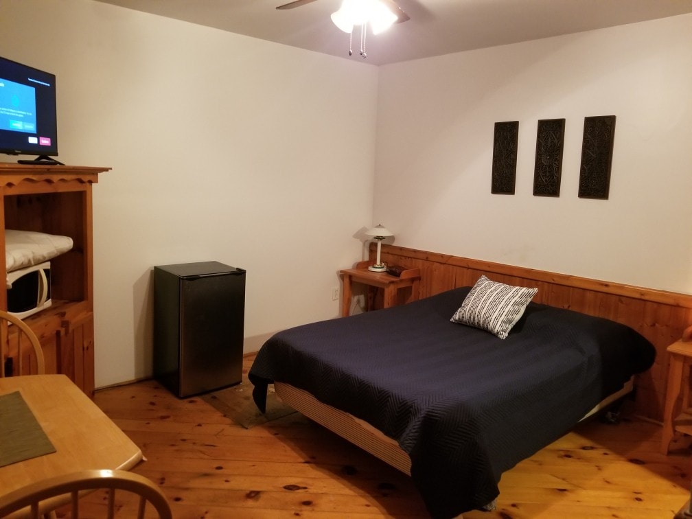 Hébergement - Chambre Hotel #4 idéale pour le couché. Mini frigo, micro-onde, téléviseur, wifi, coin feu extérieur partagé. Sur complexe de 3 chalets. Tout juste à coté de notre commerce station service dépanneur. À proximité: Camping plage McKenzie Brasserie du Lac Brompton Domaine Brompton Grand Lac Brompton Sentiers motoneiges et VTT Sentiers de Fat Bike Nombreuses activités sportives À 15 min en voiture de Sherbrooke, Orford, Magog La TPS-TVQ est inclus dans notre prix.