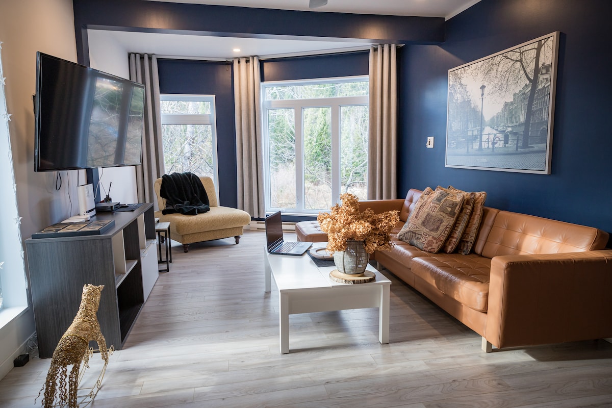 Brand new pet friendly holiday getaway now available in the heart of downtown Knowlton! Escape the hustle & bustle of the city for an Eastern Townships nature break where you can go hiking, skiing, snowshoeing or skate on Brome Lake. Meet artisans, food producers and shopkeepers. Sample gourmet food, local cheese, microbreweries and discover the numerous wineries on the wine tour. Go antiquing or simply luxuriate in one of our many surrounding Scandinavian Spas.