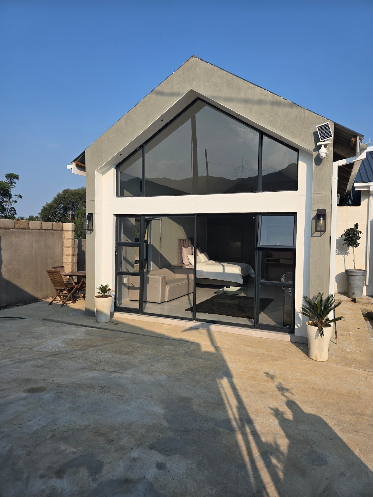 'The Cottage' is nestled in an indigenous garden, on its own private stand alone property, only a 5 minute drive from Mbabane city centre. Fully walled and secure, with an automated access gate. The Cottage boasts a queen size bed, fully equipped kitchen, smart TV, WiFi, comfortable open plan layout. The bathroom comprises a large shower, double basins and toilet. The spacious patio leads into an indigenous garden for you to enjoy... read a book or have a glass of wine.