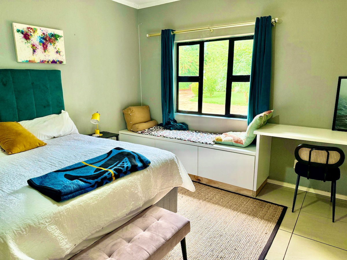 My place is a modern eclectic house with loads of natural light, art, books and surrounded by a beautiful garden and lush green sugarcane fields. The garden is home to a variety of birds, therefore very tranquil and great for relaxation. The house is close to Swazi big game parks (Kruger Park is not too far as well), sugar museum, gym, fishing and golfing. Community projects, which are of interest, are a walking distance.
