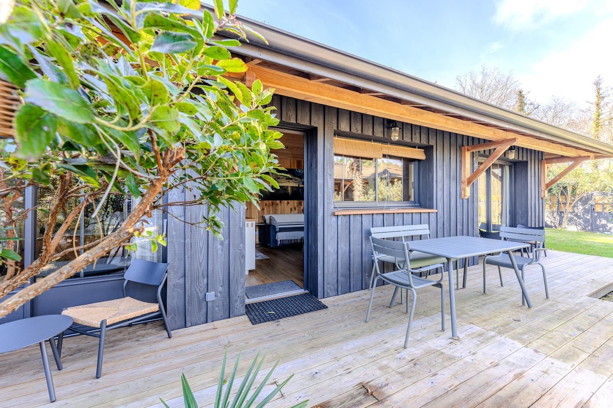Niché sous les chênes et au calme nous vous invitons à découvrir notre charmant studio neuf de 40m2, idéalement situé entre Arcachon et le Cap Ferret. Ce studio, à la fois spacieux et confortable, est équipé d’une cuisine moderne, d’une climatisation réversible et d'un espace de travail équipé d’une connexion fibre. Une place de parking est à votre disposition avec possibilité de recharger votre véhicule électrique.