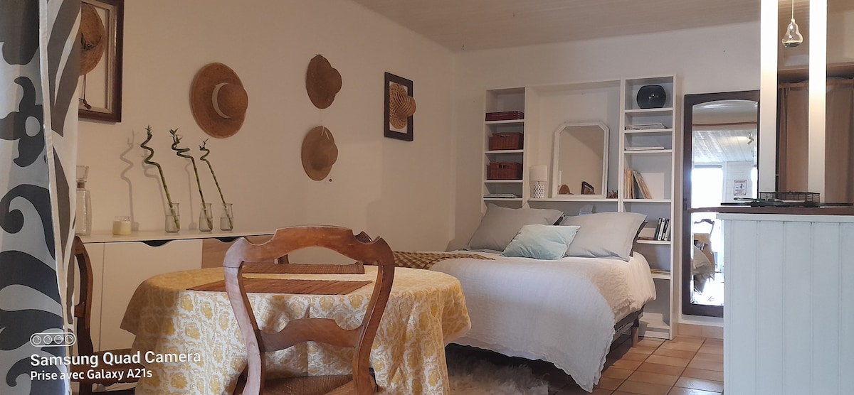 Petit studio coquet 21m2, tout équipé pour 2 personnes, au bord du lac de Lacanau (plage à 20 mètres, terrasse avec vue). Situé au rez-de-chaussée d'un petit bâtiment de 4 habitations, notre propre logement étant au premier étage. Le Moutchic est situé à 6 km de Lacanau Ville (hypermarché) et à 6 km de Lacanau Océan (plages, restaurants, bars et discothèques, tous commerces).