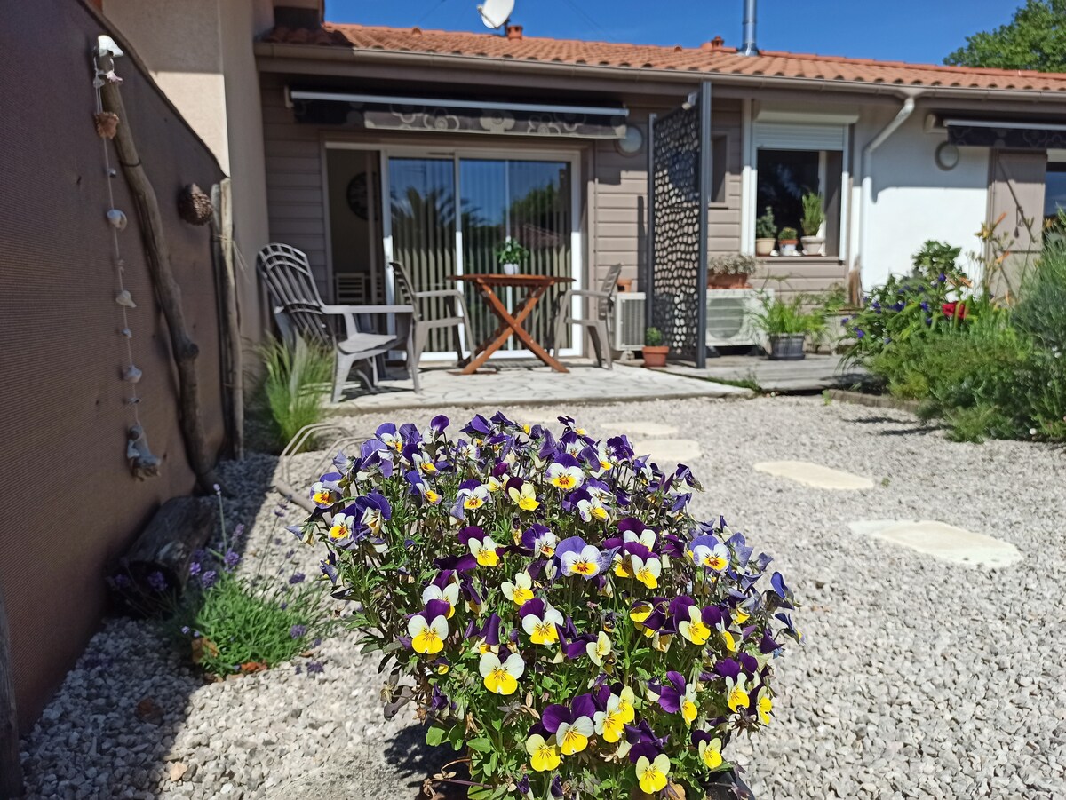 Nous vous accueillons dans cette petite maison fraîchement rénovée, située au bord du lac de Soustons, un village au coeur de la forêt Landaise, et à 10 minutes des plages. Elle est située dans un quartier calme et verdoyant, proche du centre ville (2 km) et au bord des pistes cyclables (voie verte). Composée d'1 chambre (lit double), 1 séjour (cuisine et salon avec canapé conv.), 1 SDB avec douche et WC; elle est parfaite pour 2 à 4pers. Vous pourrez profiter du soleil dans la cour privative