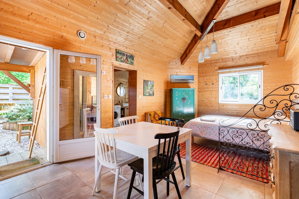 Nous sommes situés au centre ville de Soustons. Vous avez donc tous les commerces à côté : boulangerie, pharmacie, restaurants, médecin, cinéma, ... Notre mini maison se situe au fonds de notre jardin. climatisation réversible qui chauffe l’hivers et permettra de vous rafraîchir en été. vous bénéficiez d'un espace pour manger avec de la vaisselle fermé par une véranda, un espace salon avec canapé convertible, une salle de bain, un espace nuit. Grande terrasse et BBQ Wifi