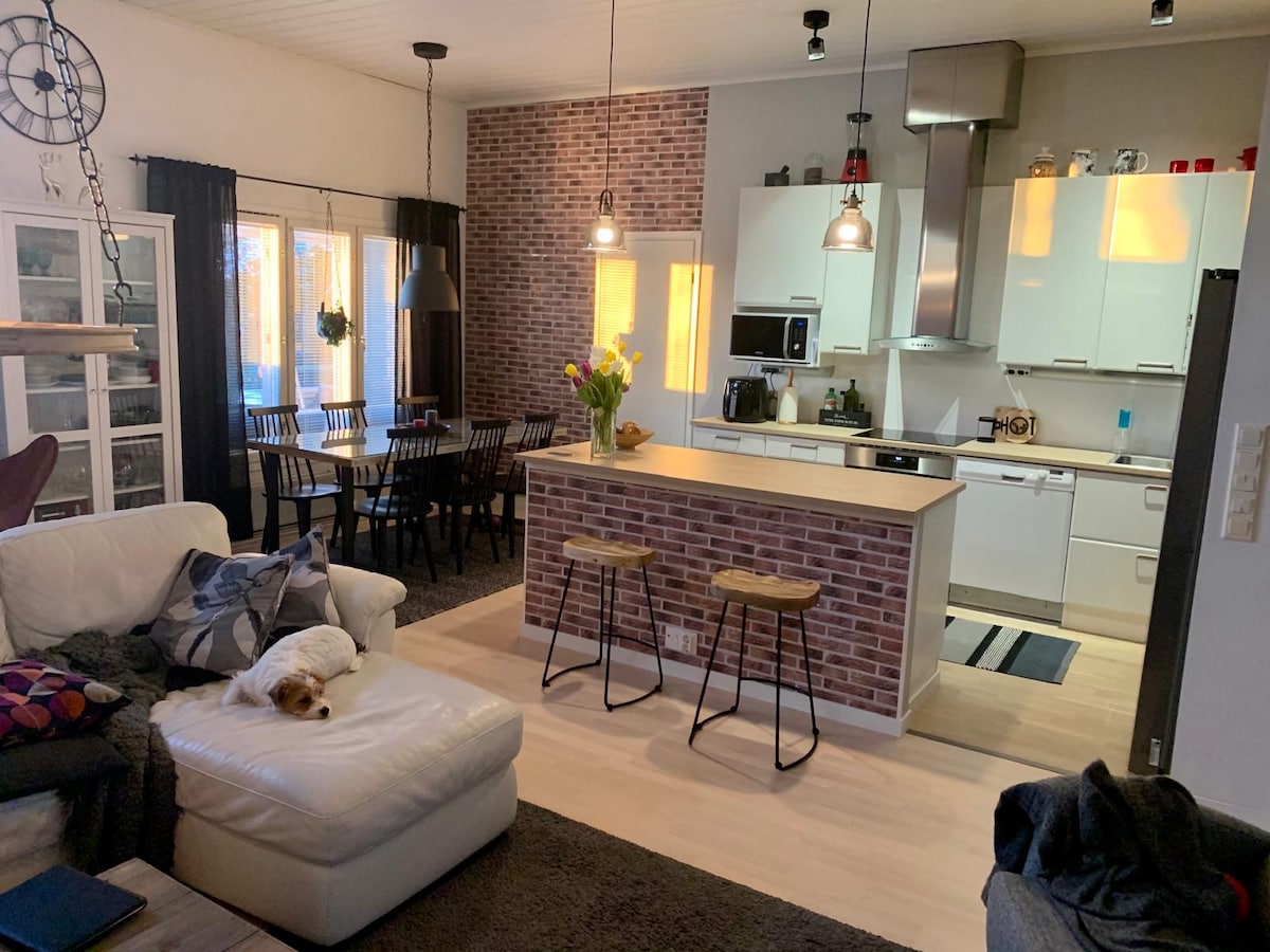 Kodikas talo (85 m2) rauhallisella maaseudulla. Huoneita 2 + parvi + alkovi. (tilava olohuone/keittiö ja makuuhuone parvella ja alkovilla). Omistaja asuu samassa pihapiirissä. Ulkoporeallas lisämaksusta, kysy lisää varauksen yhteydessä. Ilmainen Wifi, 2 ilmalämpöpumppua, lattialämitys, takka. Koko laaja kaunis pihapiirimme on käytettävissä, 2 patiota, 2 pöytäryhmää ja aurinkopedit. Vieraidemme käytettävissä on myös 2 sup-lautaa, soutuvene, myöskin erikokoisia pelastusliivejä on tarjolla.
