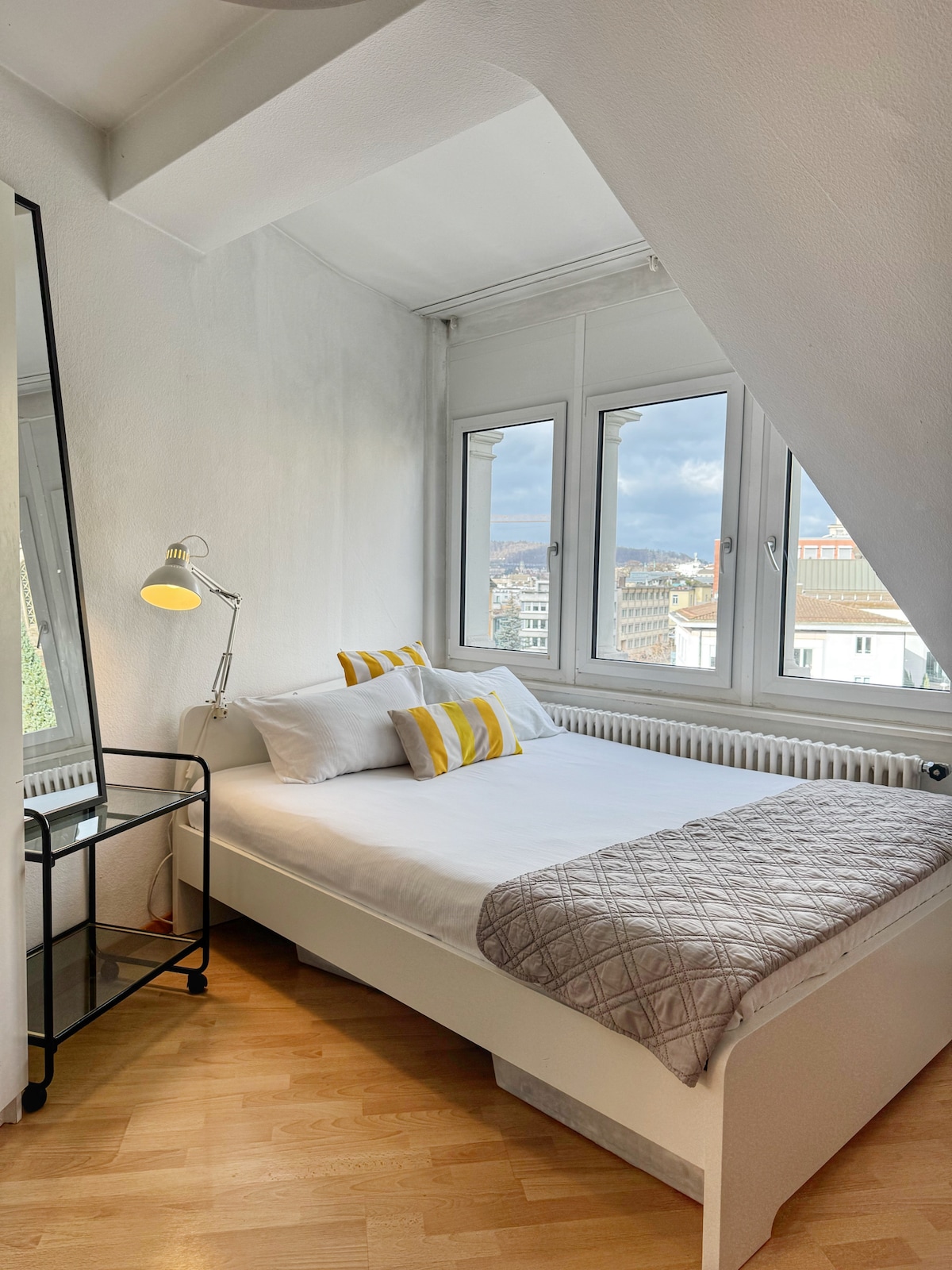 High-quality, comfortably and practically furnished, quietly located 2-room attic apartment (3rd floor, no elevator) in the popular Seefeld district. Lake, opera house and Stadelhofen train station, from which Zurich airport can be reached in 20 minutes, are within 2 minutes walking distance. The old town, Bahnhofstrasse and the Kunsthaus Zürich are within 10 minutes walking distance. Restful sleep in extra large bed 200cm x 200cm. Dyson fan and air purifier for allergy sufferers are available.
