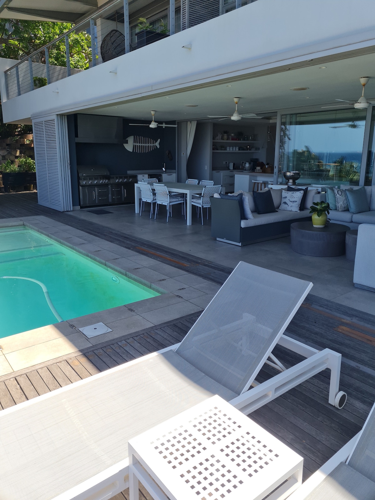Oceans Edge is a modern & comfortable 3 bed (6 Sleeper) home with incredible sea views. Perfect for Families! No parties allowed. Stay to relax and unwind and rejuvenate your soul. Vitamin Sea at its best! Sip on cocktails from the large jacuzzi inspired Splash Pool on a hot summers day & watch the dolphins swim past. It is not heated. Whale watching is breathtaking in the winter months 10/15 minutes from Umhlanga/Ballito & King Shaka Airport. Jojo Tanks & Backup Generator for outages!