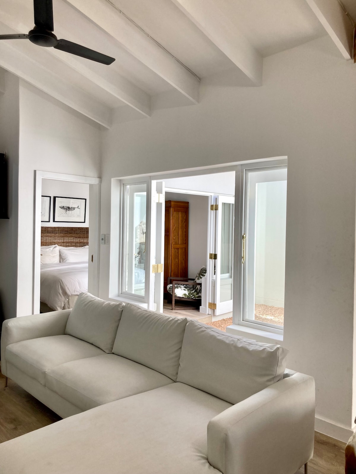 The Harbor View apartment is an open plan double volume, double story, modern contemporary space situated at the end of Durban’s point area. The views are spectacular in this sunny seaside space. The area is quiet and peaceful with the the soothing sound of the ocean and the odd clang from the dockyard.