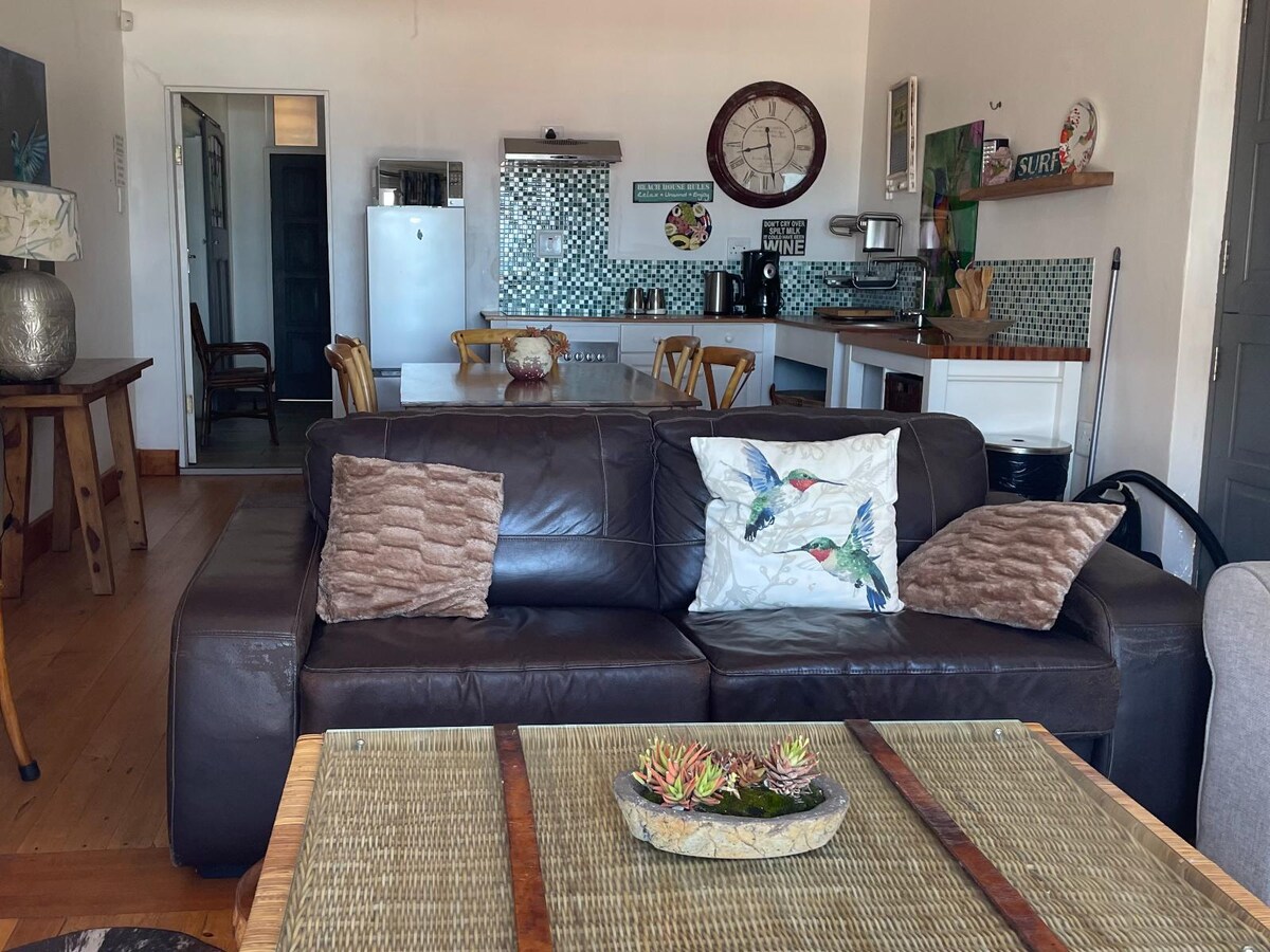 One bedroom air conditioned cottage with King size bed, bath, shower, TV with Netflix and YouTube, close to the beach, covered parking, gas stove and microwave with full size fridge. Outside braai/entertainment area which is also covered with an awning Completely fenced off from main property, own private entrance. 24 hour armed response