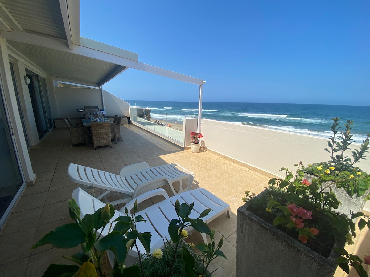 Spectacular! Beachfront!m beauty! - free WiFi - fully serviced - DSTV - air conditioned MAGICAL property offers modern pizzazz, central with all the hotel like amenities Concierge to welcome you, Modern open plan living leads to an entertainment patio. 3 magnificent bedrooms, all with SUPERB sea views. Direct beach access, directly located on promenade . - Dedicated workspace in foyer Allocated covered parking, trailer parking. Feel and hear the ocean throughout