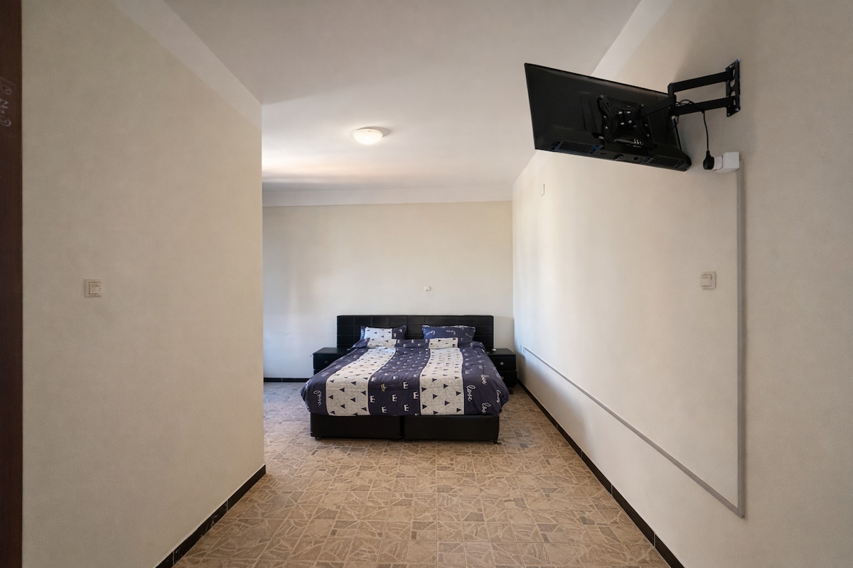 This room offers King size beds, measuring 180 meters wide. In addition, it boasts a comfortable sitting area , a balcony for smokers or those in need of fresh air, and a dining space. The room is furnished with a smart TV and Wi-Fi, while the bathroom provides hot water. Everything is self-sufficient, with the added benefit of a communal kitchen fully stocked with essential cooking amenities. Cleaning service is accessible from 10 AM to 5 PM.