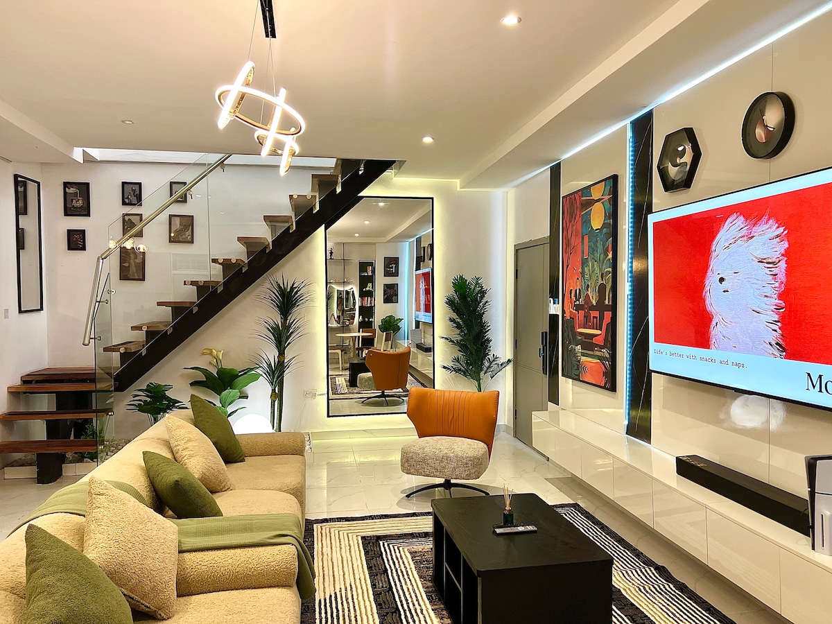 🏡~Entire 2-Bedroom Modern Duplex Home in Lekki, Lagos. DESCRIPTION ¤ 24/7 Electricity🔌 ¤ Clean Water💧 ¤ Workspace 👨💻 ¤ Unlimited Wi-Fi ¤ Netflix | YT ¤ Keycard access to Estate Gyms & Pools 🏊♂️ ¤ Washing Machine ¤ Private Parking ¤ 24/7 Security ¤ Every 3 days cleaning 🧹 ¤ Flood Free ⚡️ ¤ Close proximity to Supermarkets, 24/7 Grocery store, Restaurants, Club/Lounge, Salons, Spa, General hospital, Lekki Conservation Center (Nature Preserve)