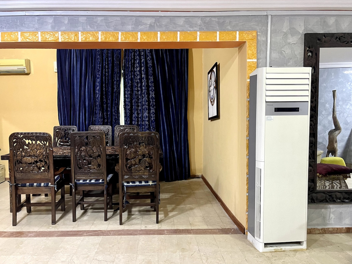 24 / 7 power guarantee, super fast 5g internet, purified and treated water system. Power is a mix of Gen, NEPA, and inverter. Inverter is used to avoid disruptions during change over. Large appliances do not work on inverter Entire private guest suite within a larger building. The main living room of the larger building is operated similar to a hotel lobby and is accessible to other guests. Located in Lekki phase 1 (Oniru)