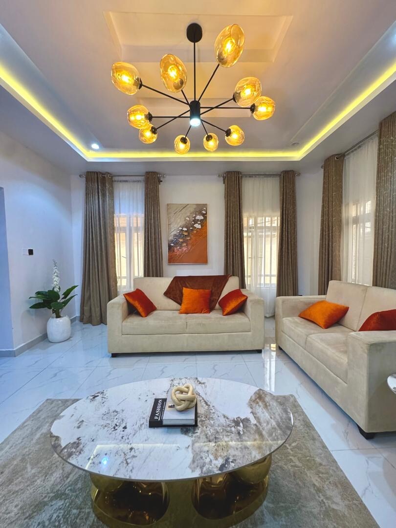 Family friendly spacious 4-bedroom contemporary house with lovely ambience in a serviced and secured estate with nearby attractions like supermarkets, bars, restaurants and cinema. The house is fully furnished and equipped to meet your need with; **24-hours power (with 10kva inverter as backup) **24/7 security **Beautiful and comfy living room and dining room. **2 Balcony on 2-floors **Equipped kitchen **Netflix and DSTV (Cable TV) **Home cleaning **Fast Internet (Fiber-optic internet)
