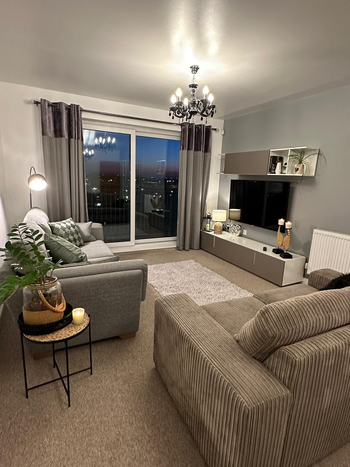 Enjoy a stay in our modern 2-bedroom flat, perfectly placed for concerts, football and easy city access. Inside, a bright living space with plush seating and a smart TV welcomes you to relax in comfort. The fully fitted kitchen has everything ready for home-cooked meals. Two airy double bedrooms give you room to recharge, and the sleek bathroom with a bathtub offers a soothing escape after long days exploring Manchester or attending events just minutes away.